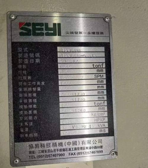 > 长沙工厂在位少用协易1000吨冲压线5台,100.