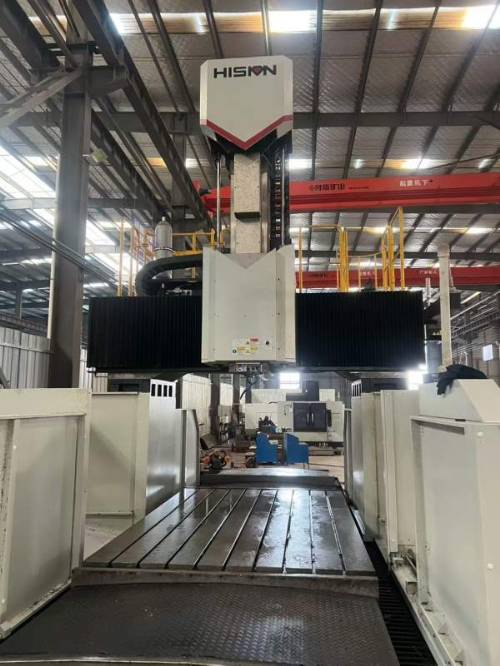 | 宁波海天2330数控龙门,工作台2000/3000mm,门宽2300,过门高1400mm,三轴行程.X/Y/Z3200/2255/1000mm,主轴BT50齿轮头,防滑枕380/380mm,主轴油冷,中心出水,手动测洗头,法纳克MF-plus系统。