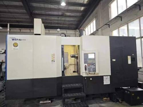 刚到货,高配原装韩国威亚双工位卧式加工中心,型号HS5000i、三轴行程850x700x750工作台一度一分,BBT40电主轴12000转、60把链式刀库,带对刀仪、带中心出水、发那科32i高配系统、设备安装少用,2018年,