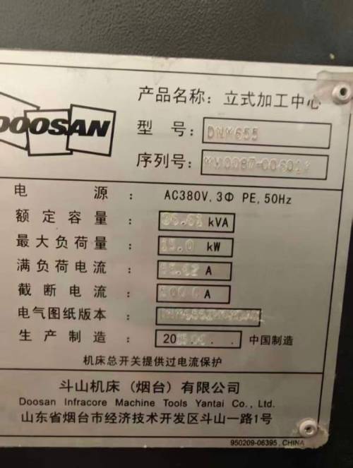 斗山655加工中心一台,成色很好,bt40主轴带四轴,阿尔法驱动,行程1270*670*625,高刚性,军工企业设备,保养良好