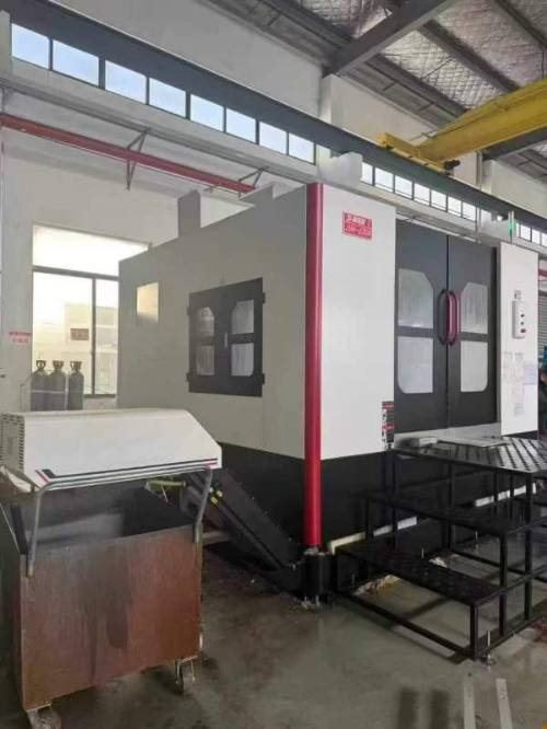 2024年乔锋630卧加,乔峰630卧加,三轴滚柱线轨,bt50主轴,工作台千分之一度,发那科MF plus系统,BT50主轴皮带6000转,30把刀库,XYZ:1300*950*710mm,带主轴油冷,链式排屑器!
