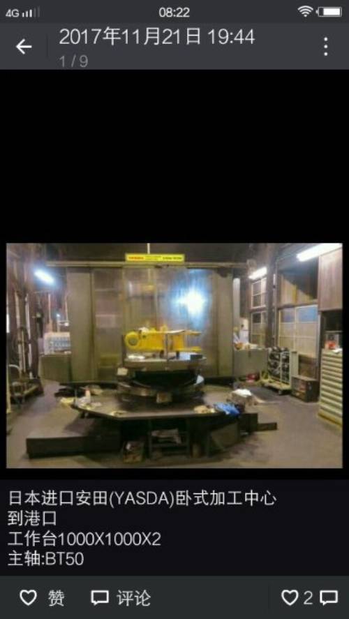 【价格电议】日本进囗安田(YASDA)卧式加工中心 工作台1000X1000X2 主轴:BT50 温馨提示:点击最下面“参与”,填写联系方式,等待对方联系~联系时请说是在设备淘网站上看到~谢谢合作! 需要出售或采购设备,点击我要爆料!免费发布你想买、 卖的设备信息~ 设备在浙江 |