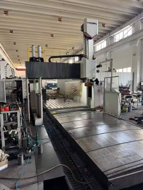 山东工厂刚刚拿下:顶配海天GRU32X5、工作台2.5X5000行程5500X3650X1250、门高1750、过宽3300、全自动铣头、带个全自动延伸头、三轴光栅尺、40把立卧刀库、中心出水,新机状态。