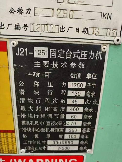 清库存处理2013年安徽航天JD21-125冲床,安.