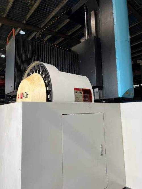 浙江金凯3022龙门加工中心,工作台1.83.1米,三轴行程XYZ1000过龙门宽2.23米,过龙门高1.28米,两线一硬的轨道,带24把机械手刀库,BT50主轴6000转,龙头式排屑机,法纳克MFPIus系统。